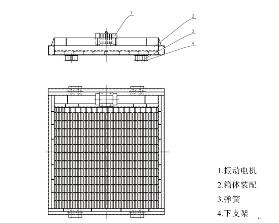 振動篦板由振動體、振動電機、支撐彈簧、彈簧支座等組成。篦板為焊接結構,篦孔尺寸根據物料種類和用戶要求而定。